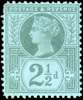 1888 2½d Jubilee Colour Trial (Line Perf 14). Very fine perforated example printed in green on blue, gummed, Crown-watermarked paper. A few short perfs at left, otherwise fine. A pleasing example of this great rarity. SG 201