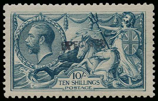 1919 10s Dull grey-blue. Very fine unused o.g. example overprinted "SPECIMEN" type 31 in black. Spec. N71(2)u. 1989 RPS Cert.