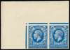 1934 4d "Photogravure" essay. Very fine imperforate corner marginal pair printed on ordinary, gummed unwatermarked paper in royal blue. Scarce.