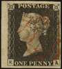 1840 1d Grey black Pl.2. (State 1). Very fine and fresh used good to huge four margin left hand marginal example lettered EA showing double letter E variety cancelled by a crisp red MC clear of variety. Attractive. Spec. AS16c.