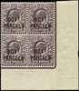 1902 6d Pale dull purple (Govt. Parcels). Very fine and fresh unmounted o.g. bottom right hand corner marginal block of four bearing a light vertical gum wrinkle at left nevertheless a wonderful multiple, scarce. Ex Michael Astley Collection.