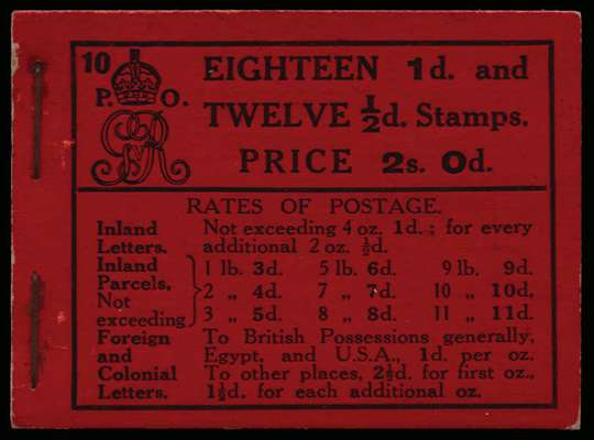 1913 2s0d Booklet (Wmk. Cypher Edition No.10). Very fine and fresh example of this difficult early George V booklet.