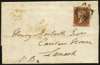 1841 1d Red-brown Pl.10. Very fine used good to large four margin example lettered RI showing variety "P converted to R by hand engraving" and re-entry, on entire sent locally within London tied by a crisp black MC. London datestamp on reverse for SP.15.1841. Spec. AS69e.