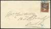 SG17 1854 1d Red-brown Pl.R2 cover blue cancel