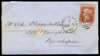 1858 1d Rose red. Very fine used example lettered HI neatly tied to entire by a superb strike of the rare Manchester "498" Beard stamping machine cancel for MA.5.1858. Addressed to Macclesfield with an arrival cds on reverse for the following day. The Beard stamping machine was trialled for only a few weeks in March 1858, this example pre-dating Parmenter's EKD by 6 days. The machine was deemed unsatisfactory due to problems with the ink pad either over-inking or under-inking the die, hence superb impressions are rarely seen.