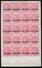 1867 3d Rose Pl.5. Very fine and fresh unused o.g. bottom marginal imperforate pane of twenty lettered AE-EH overprinted "SPECIMEN" type 6, showing part sheet inscription at foot. A few minor gum wrinkles as to be expected on such a large multiple and a small reinforced tear at top nevertheless a scarce pane so fine. Spec. J30s. Ex. "Verus".