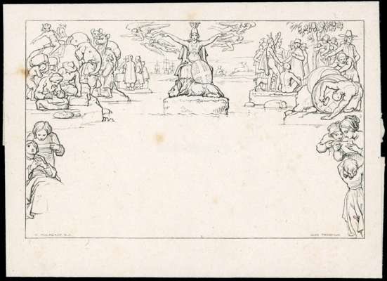 1840 Mulready lettersheet die proof in black on India paper, some light foxing, otherwise fine, a scarce proof. SG ME1var