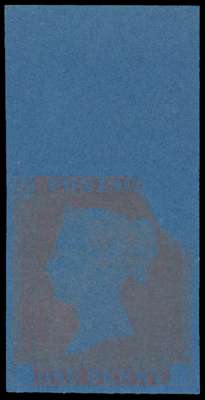 1840 1d Rainbow Trial (State 2a). Very fine four-margined top marginal example, printed in lilac-rose on wove paper, deeply blued in prussiate of potash. Spec. DP20(2)a.
