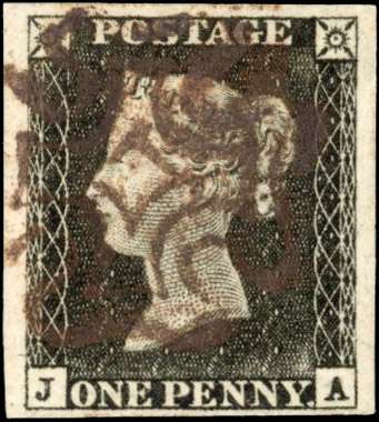 1840 1d grey-black Plate 1a (JA), four close to large margins, cancelled by neat strike from brown MC (probably Haddington), very fine and rare. SG 3; Spec. AS2vi, £3,000