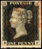 1840 1d black Plate 1b lettered RF, used with light red MC. Good margins, large at base with portion of stamp below. SG 2