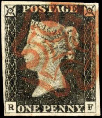 1840 1d black Plate 2, lettered RF. Four margins (close at lower left), red MC. SG 2