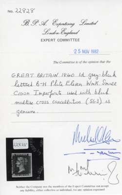 1840 1d grey-black Plate XI (BH), four good margins, neatly struck by crisp black MC, a fine example of this plate. BPA Certificate (1982). SG 3, £4,500