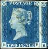1840 2d blue Plate 2, lettered RF. A really fine example with rich colour and very good margins, huge at right with a good portion of the adjoining impression. SG 5