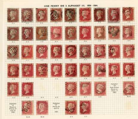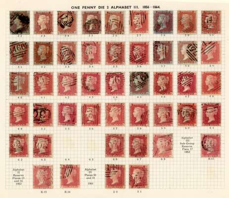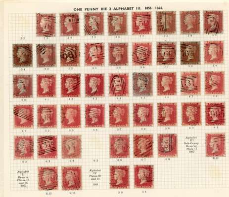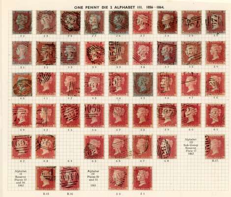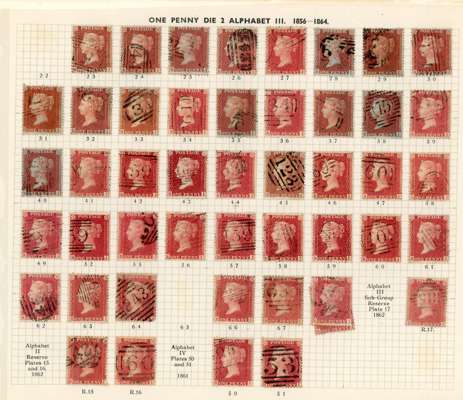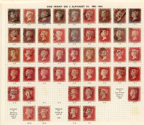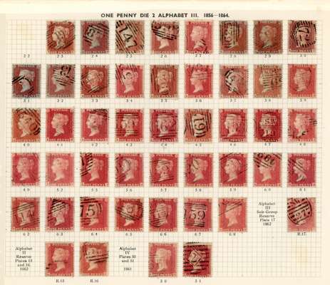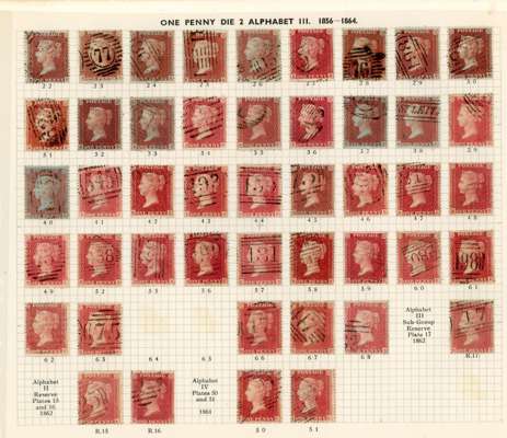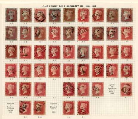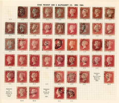 GB 1856-64 1d reds from Plates 22 - R17, the R Row