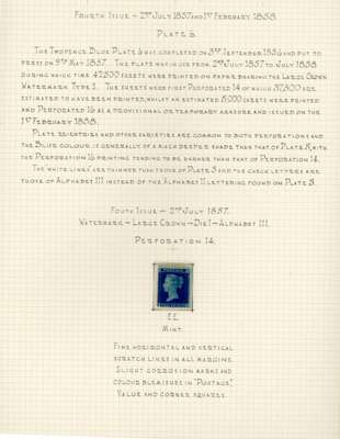 1857 very fresh 2d deep blue Plate 6 lettered EE with full o.g., lightly hinged. Faint trace of a bend near base, rich colour. Ex “Silkin”. SG 35. Cat. £3,000