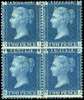 GB SG 47 1858-76 2d blue Plate 13 block mint