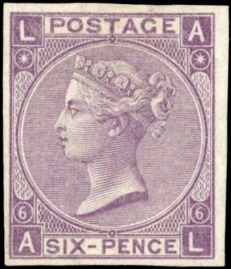 GB SG 96 1865 6d deep lilac imperforate plate proof