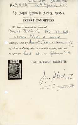 1867 10d red-brown Plate 2. Fine used example of this rare "abnormal" issue lettered IB, neatly cancelled by a London district "93" numeral. A couple of shortish perfs at base nevertheless a very desirable stamp as most examples are in extremely poor condition. 1947 RPS Certificate. SG 112, £12500