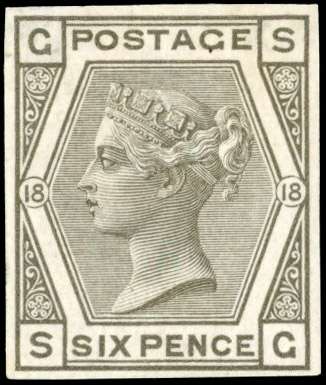 GB SG 147 1880 6d Plate 18 (abnormal) imperforate imprimatur