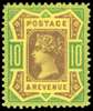 1892 10d Jubilee Colour Trial with watermark inverted, line perf 14. Very fine, printed in yellow on gummed, Crown watermarked paper. Head plate printed in purple and duty plate in yellow-green. Ex "Aureum". SG 210