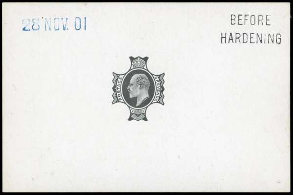 1901 4d Die Proof (Head Plate). Very fine example printed in black on white glazed card (92 x 60mm), endorsed BEFORE HARDENING and dated 28 NOV. 01. SG 235
