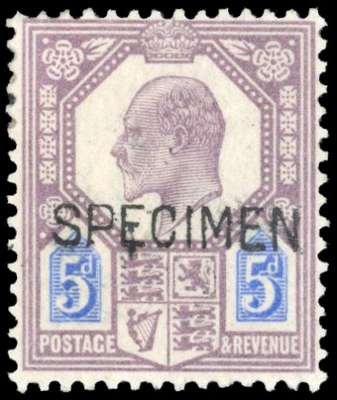 1902 5d dull purple and ultramarine. Fine o.g. example printed by DLR, overprinted SPECIMEN type 16. SG 242aas, Spec M28(1)s. Ex "Minoru".