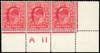 1911 Harrison perf 14 1d deep rose-carmine, mint unmounted o.g. lower right corner A11 (w) control strip of three. Fine and scarce. Brandon opinion (2004). SG 274, Spec M6(6)