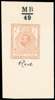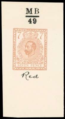 1910 3d Hentschel colour essay. Very fine example printed in purple on yellow wove paper (45 x 90mm) with handstruck "MB/61" above design. Most attractive and scarce.