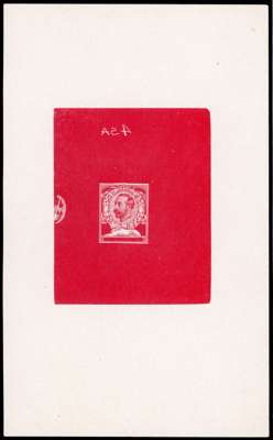 1911 1d Die proof (Die 1a). Very fine stage 1 example in scarlet on proof paper (168 x 103mm) with "4SA" engraved above in reverse. Very scarce. SG 327