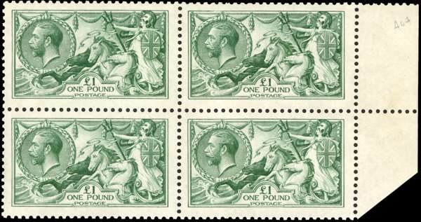 GB SG 403 1913 £1 Seahorse block mint