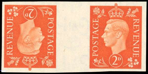 1938 2d orange. Very fine unmounted o.g. imperforate imprimatur tête-bêche gutter pair with NPM handstamp on reverse. Very rare. Ex NPM Archive sales. SG 465