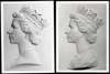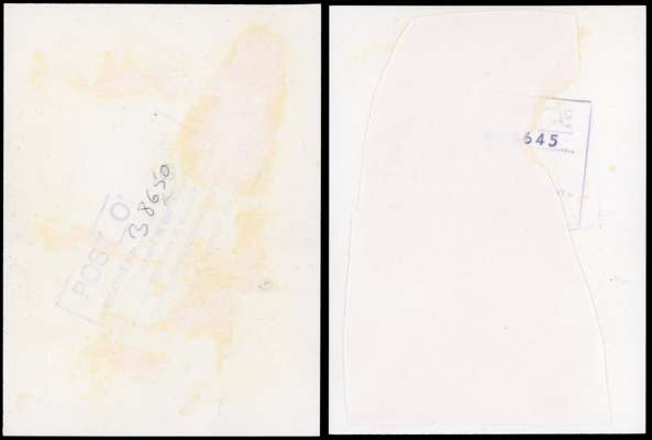 1966-67 photographic essays of the Machin ‘Diadem Head' and the Issued Head, (126x171mm), each bearing Post Office Negative number handstamp on reverse with manuscript annotation ‘38650’ for ‘Diadem Head’ and ‘38645’ for the Issued Head. Some archival paper adhesions on reverse, still very fine and attractive pieces.