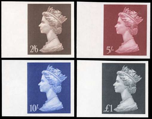 1969 Machin high values (POP/PVA) imperforate left marginal imprimatur set of four, each bearing BPMA handstamp on reverse, mint unmounted o.g., fine and rare. SG 787-790; Spec UD1-UD4, £7000