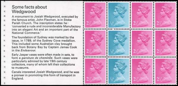 1972 ½p turquoise-blue (3) 2½p magenta (9) (FPC/PVA) pane of twelve ex Wedgwood booklet, showing phosphor omitted, mint unmounted o.g., very fine and scarce. SG X842-X852; Spec.UEP3c, £1500