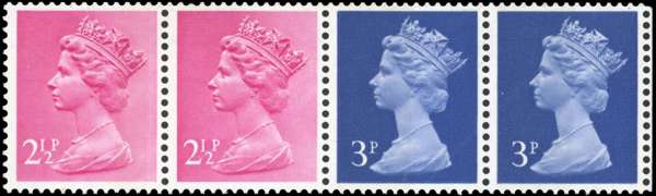 GB SG X852a, 856 1972 2½p and 3p Machin strip displaced phosphor mint