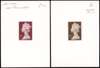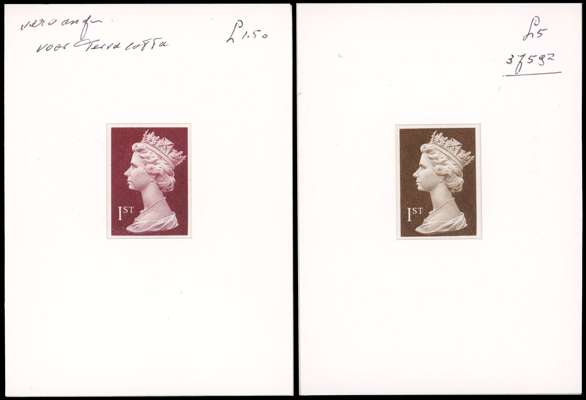 1999 Enschede engraved 1st stamp sized proofs on wove paper, mounted within frame (99x135mm) taken from presentation booklet (cover enclosed with the lot) prepared for the proposed large format high values for the £1.50 and £5 values, in red (terracotta) and brown, with manuscript annotations at top, most attractive and rare. SG Y1800-Y1803