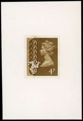 Isle of Man. 1971 4p unadopted essay in ochre-brown (on FCP) mounted on thick card (45x68mm), a couple of toned perf tips not detracting, a very rare essay, one of only two thought to exist in private hands.
