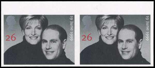 GB SG 2096a 1999 26p Royal Wedding imperforate pair mint