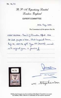 Board of Education. 1902 5d dull purple and blue, mint. Very fine and fresh unmounted o.g. BPA Certificate (2006). SG O81
