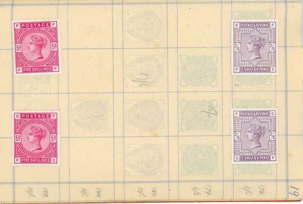 1841-1884 ‘old time’ mint collection housed in two approval books, with many plated and identified, including 1841 1d red-browns (x6), 1854-57 issue with 1d red-brown (die II) SG 29 (cat £250), 1d brown-rose SG 32 (cat £375), 1864-79 1d rose-reds near complete range of plates (less Plates 77 & 225), 1858-76 2d blue Plate 9 SG 45 (cat £250), 2d blue ‘thin lines’ Plate 14 (x2, cat £400 each) and Plate 15, 1870-79 ½d rose-red assorted plates, 1870 1½d rose-red Plate 1 & Plate 3, surface-printed with 1867-80 3d deep rose Plate 6 SG 102 (cat £650) and 3d rose Plate 6 SG 103 (cat £450), 1880-83 watermark Imperial Crown 2½d blue Plate 22 SG 157 (cat £250), 1880-83 4d grey-brown Plate 18 (x2 cat £350 each) 1880-81 set to 5d indigo with duplication, 1881 1d lilacs (both types and shades), 1883-84 high values with 2s6d lilac SG 178 (x3 cat £600 each), 5s rose SG 180 (x3 cat £1100 each) and 1883-84 ‘Lilac & Green’ part set to 9d dull-green with duplicated lower values, mixed condition with fine, a valuable lot.