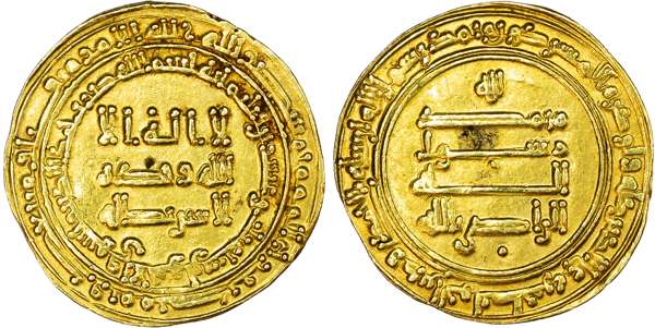 Abbasid, Al‑Radi (AH 322‑329 / 934‑940 AD), gold heavy Dinar, AH 322 / 934 AD, Suq al‑Ahwaz, 5.20g (A. 254). Extremely Fine.