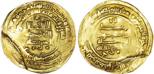 Abbasid, Al‑Radi (AH 322‑329 / 934‑940 AD), gold Dinar, AH 327 / 938/9 AD, Hamadhan, 3.77g (A. 254.1). Good Fine, segment broken.