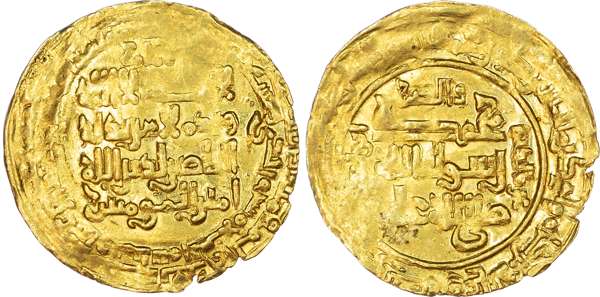 Abbasid, al‑Nasir (AH 575‑622 / 1180‑1225 AD), gold Dinar, AH 591 / 1195 AD, Madinat al‑Salam, 2.41g (A. 268). About Very Fine.