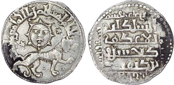 Seljuq of Rum, Ghiyath al‑Din Kay Khusraw II (AH 634‑644 / 1237‑1246 AD), silver Dirham, Lion and Sun type, AH 642 /1244/5 AD, Qunya, 2.98g (A. 1218). Very Fine.