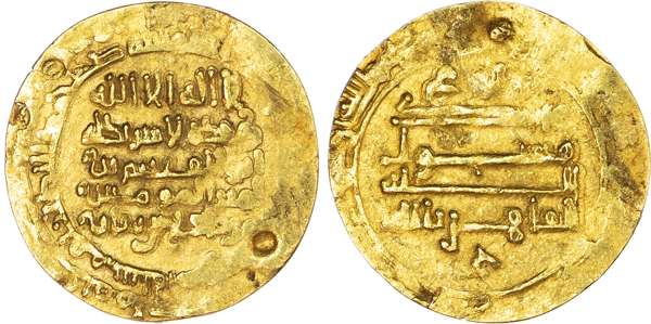 Ziyarid, Mardawij ibn Ziyar (AH 315‑323 / 927‑935 AD), gold Dinar, AH 322 / 934 AD, Qumm, acknowledging the Abbasid Caliph al‑Qahir, mint mark jim below reverse field, 2.55g (Dauwe, ONS Newsletter 184 p. 11, fig. 1). Good Fine, a couple of punches to surfaces. Extremely rare.