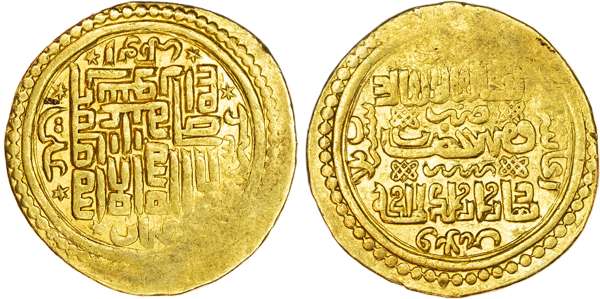Ilkhanid, Abu Sa'id Bahadur (AH 716-736 / 1316-1335 AD), gold Dinar, dated al-khani year 33 = AH 735 / 1334/5 AD, Tabriz, type H, 7.61g (A. 2216). About Extremely Fine, some weakness to the flan.