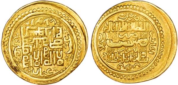 Ilkhanid, Abu Sa’id Bahadur (AH 716‑736 / 1316‑1335 AD), gold Dinar, dated al‑khani year 33 ‑ AH 735 / 1334/5 AD, Iravan, type H, 8.87g (A. 2216). About Extremely Fine, slightly bent flan, extremely rare mint.