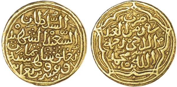 India, Sultans of Delhi, Muhammad bin Tughluq (AH 725‑752 / 1325‑1351 AD), gold Tanka, AH 728 /1327/8 AD, 11.02g (G&G D345). Extremely Fine, perfectly centred.