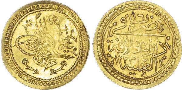 Ottoman Empire, Mahmud II (AH 1223‑1255 / 1808‑1839 AD), gold Surre Altın, AH 1223 (frozen year), year 16 ‡