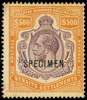 1912 $500 purple and orange-brown overprinted SPECIMEN Type D12, toned o.g. with some foxing; centred right. SG 215s, £5500
